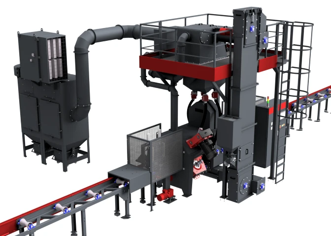 * Es wird zum Strahlen von Rohren und Stangen verwendet.