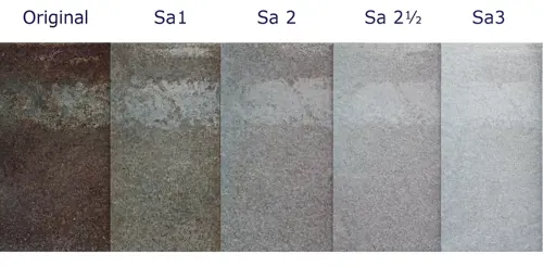 Surface quality after blasting is usually evaluated according to SA standards and the Ra roughness value, which define the level of cleanliness and the suitability of the surface for coating application.
