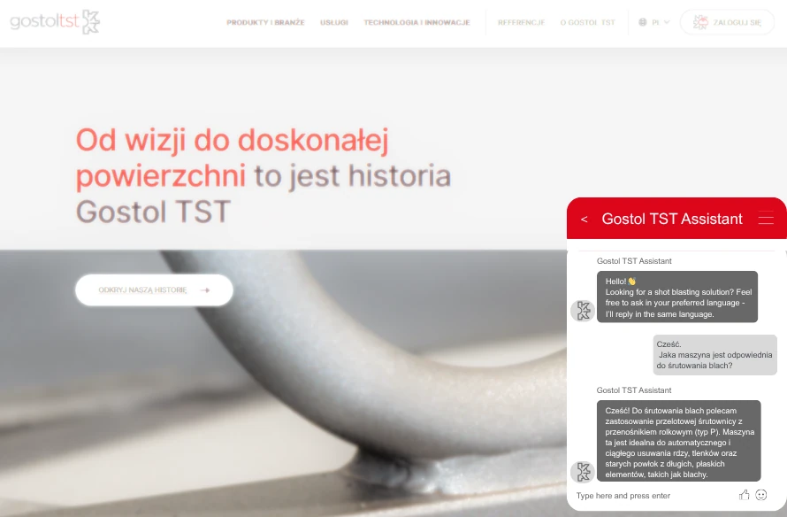 Niezależnie od tego, czy szukasz podstawowych informacji o śrutowaniu, danych technicznych czy rozwiązania dla konkretnego przypadku, asystent AI jest zawsze do Twojej dyspozycji.