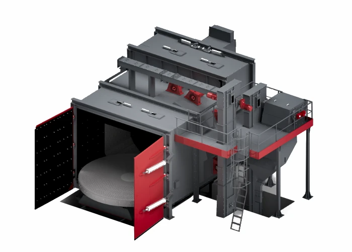 Bogie table shot blasting machine is designed for cleaning large and heavy workpieces of complicated shapes produced in small series or individual production.
